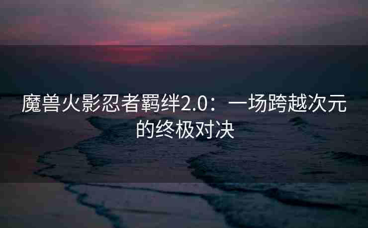 在游戏界的海洋中,魔兽世界和火影忍者是两颗耀眼的明星,分别代表着西方魔幻与东方忍者文化的不同巅峰。如今,这两座看似平行的宇宙终于在《魔兽火影忍者羁绊2.0》中实现了历史性交汇,为全球玩家带来了一场前所未有的跨次元冒险。